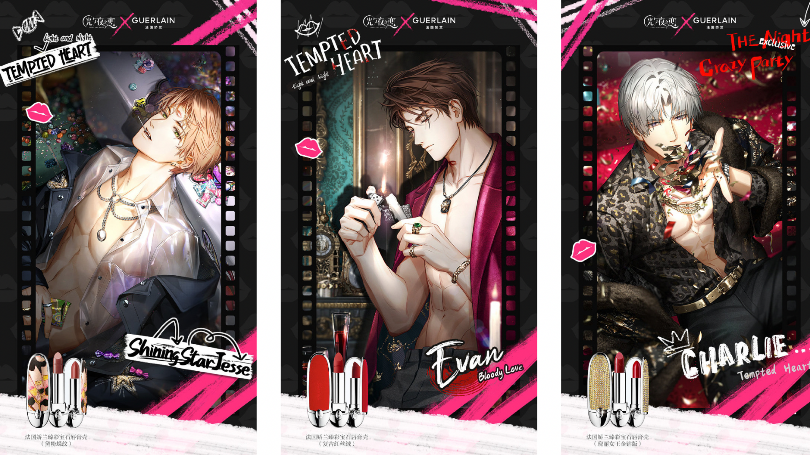 Pour la Saint Valentin, Guerlain collabore avec le jeu Light and Night 光与夜之恋 pour mettre en avant cinq de leurs emblématique Rouge G, et occasionne une rupture de stock en moins d’une semaine.