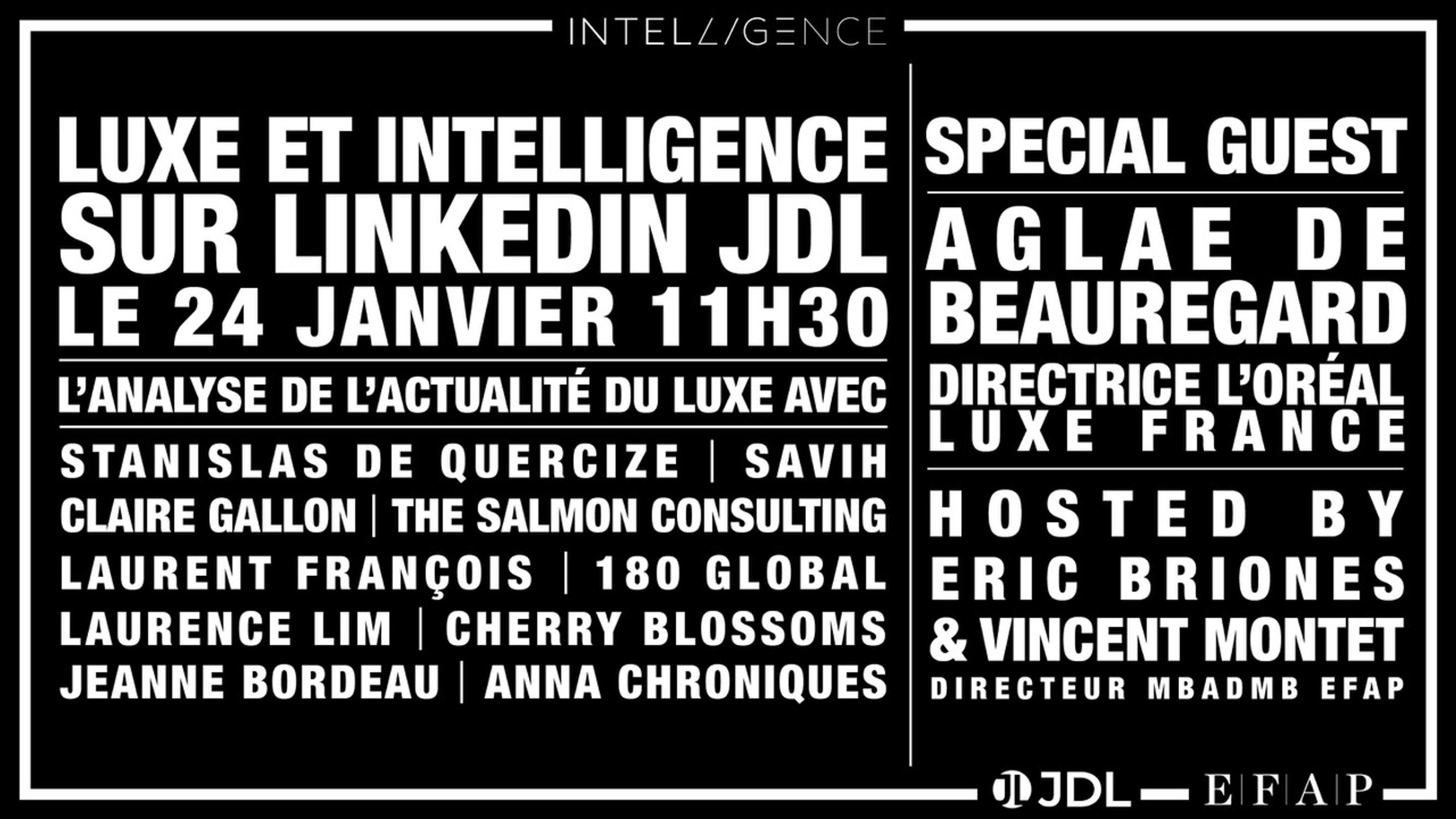 Ensemble et aux côtés d'experts du Luxe, ils évoqueront comment se profile le Luxe en 2024, dans la continuité des premiers échanges en décembre. Rendez-vous le mercredi 24 janvier 2024 à 11h30 sur Linkedin.