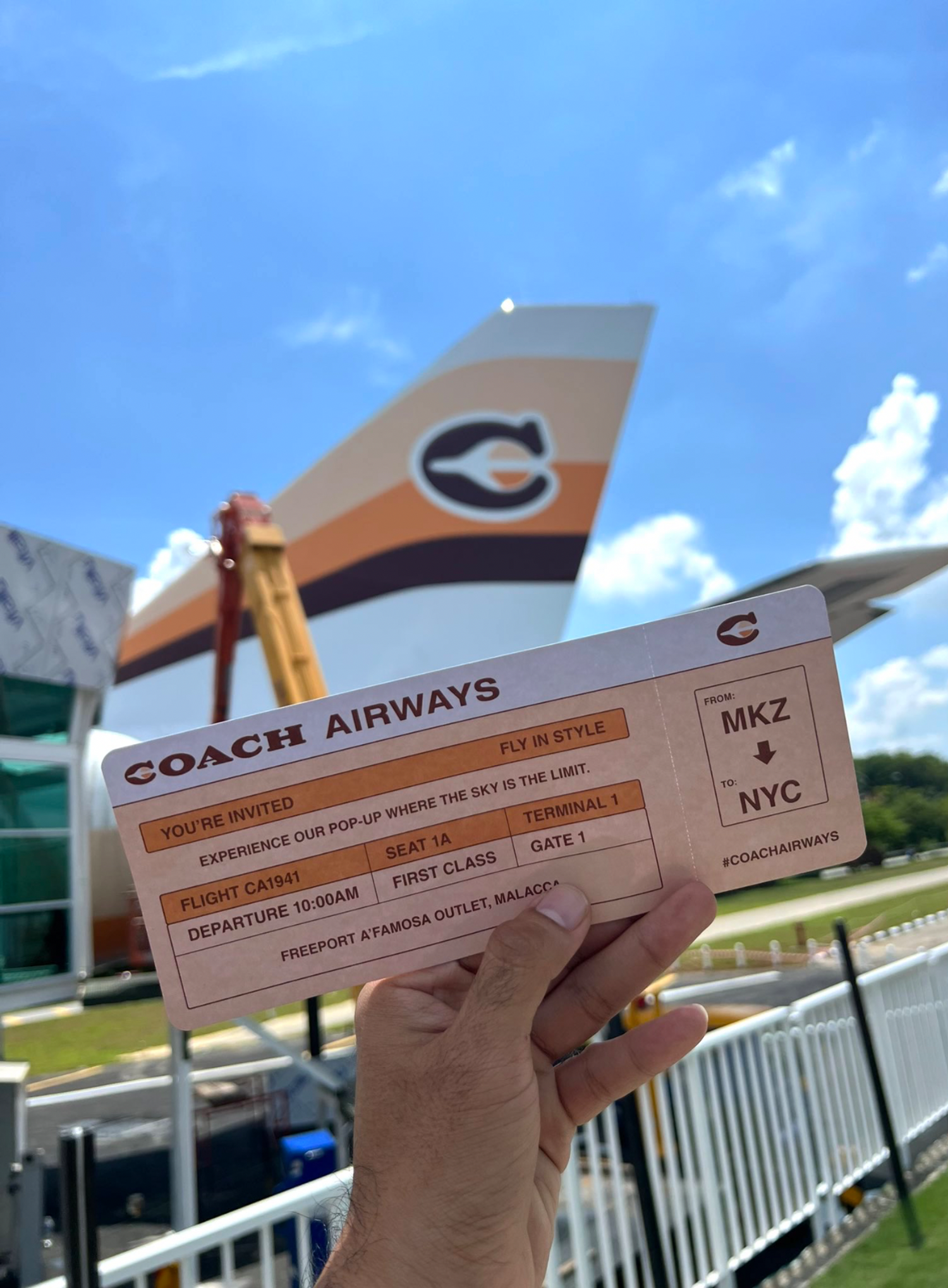 La marque américaine Coach a récemment inauguré le pop-up Coach Airways dans un véritable Boeing 747, situé au Freeport A'Famosa Outlet, en Malaisie. L’immersion est jouée à la perfection dès l’entrée qui se fait par un pont aérien et la remise d’une carte d’embarquement aux clients voyageurs. L’espace aérien (au sol) est décoré de l'emblématique esthétique rétro de Coach, avec un poste de pilotage et des sièges d'avion avec leurs coussins logotés, rendant l’espace ultra propice aux stories Instagram et aux TikTok.