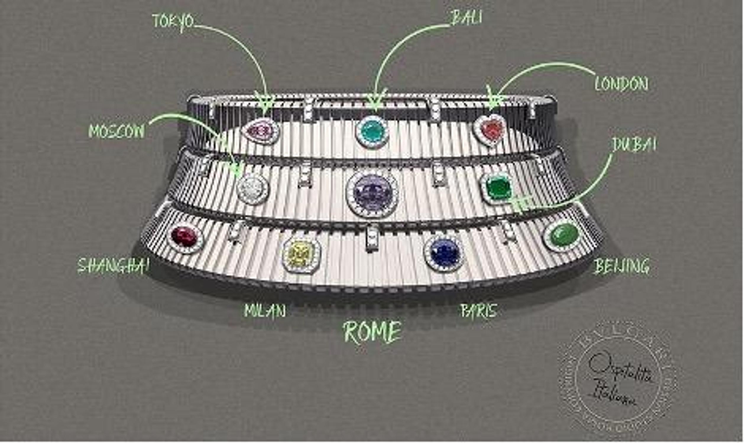 Bvlgari célèbre ce nouveau projet en présentant une pièce de joaillerie spéciale : "The Bvlgari Ospitalità Italiana Necklace". Ce collier est orné de 10 pierres précieuses différentes, chacune symbolisant une destination de luxe de la collection Bvlgari Hotels & Resorts. Cette œuvre d'art unique réalisée sur commande rend hommage à Rome, source d'inspiration éternelle pour ses créations joaillères, mais scelle également le destin partagé des expertises joaillère et hôtelière de la marque, auprès de sa communauté.