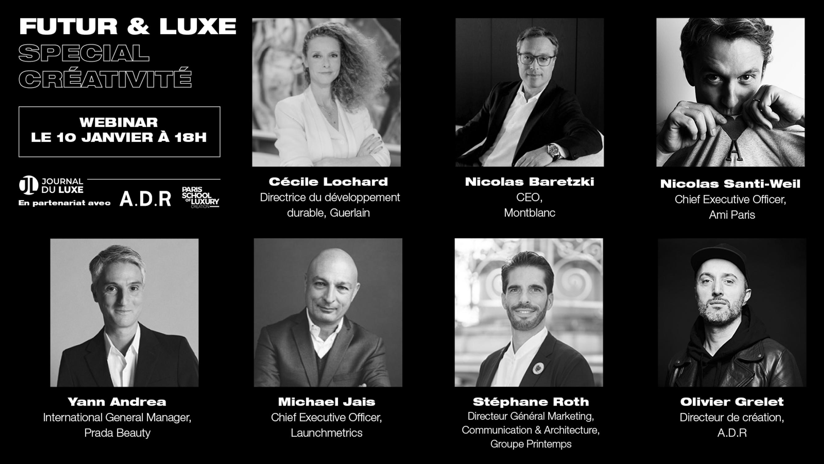 Prada Beauty, Guerlain, Montblanc, Launchmetrics, Groupe Printemps... Le Journal du Luxe vous donne rendez-vous le 10 janvier 2023 pour un nouveau numéro de son webinar "FUTUR & LUXE" avec une table ronde inédite animée par Eric Briones, Directeur général du Journal du Luxe, en partenariat avec l'agence A.D.R et Paris School of Luxury Creation.