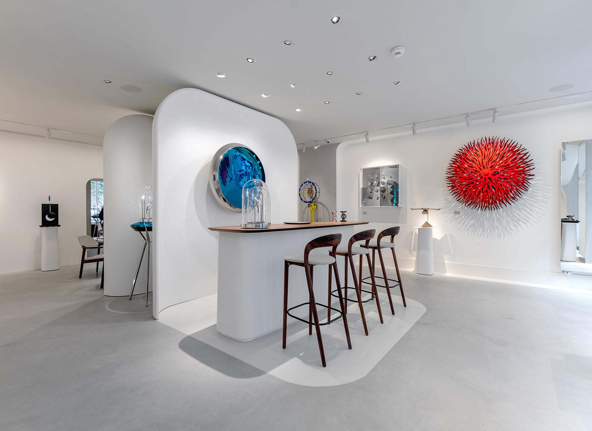 Chaque création est une aventure esthétique qui raconte une histoire, un trait commun à cette nouvelle vague horlogère. Ces créations audacieuses transcendent les conventions pour offrir des pièces hybrides mêlant design futuriste et savoir-faire horloger traditionnel. Et il fallait des lieux qui ne soient pas des horlogeries pour les vendre. Une nouvelle génération d'objets horlogers se propose en "galerie du temps". Ce sera les M.A.D. Gallery ! Une galerie ? Un concept store ? Un cabinet de curiosité de grande horlogerie ? Probablement un peu des trois. Depuis 2011, MB&F exploite ce schéma unique en horlogerie, appelé M.A.D. Gallery, qui rassemble les amateurs de curiosités mécaniques en quelques rares lieux à travers le monde. D’artisanale et empirique, l’idée de M.A.D. Gallery a mûri jusqu’à donner vie, à son tour, à un nouveau format d’espace de vente appelé MB&F Lab, associant les Machines MB&F à une sélection soigneusement choisie d'œuvres d'art mécanique et cinétique.